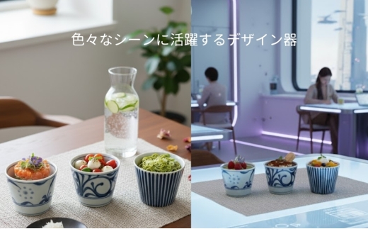 - 【砥部焼】蕎麦猪口3個セット(ゴス太陽・十草・唐草)<食器 うつわ そばちょこ カップ>2026年2月20日以降お届け [№5310-0312]