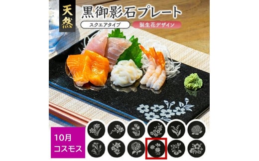 - 天然黒御影石 スクエアプレート 1枚 【誕生花彫刻(10月コスモス)】 SE0265