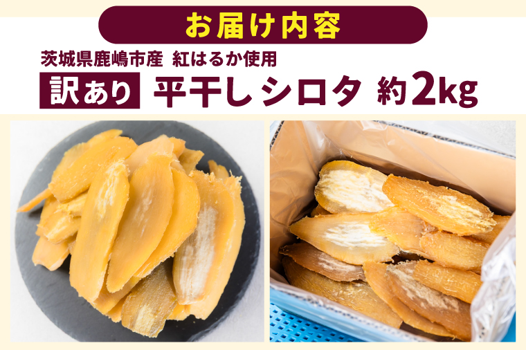 - 【先行予約】【訳あり】 数量限定!紅はるか(平干し)シロタ 白田 約2kg 【茨城県 鹿嶋市 干しいも ほしいも さつまいも サツマイモ スイーツ 和菓子 期間限定 人気】 (KAM-28)