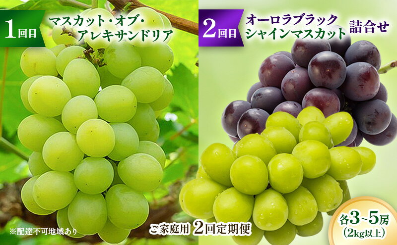 - 【ふるさと納税】【2026年先行予約】ご家庭用「 マスカット ・オブ・ アレキサンドリア 」&「 オーロラブラック ・ シャインマスカット の詰合せ」2回定期便 各3~5房(2kg以上) フルーツ 果物 数量限定 里庄町 リアムfarm お届け:2026年7月上旬~2026年8月下旬