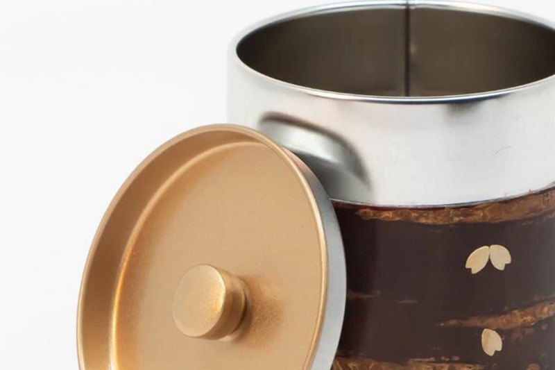 角館樺細工《冨岡商店》胴盛茶筒 チラシ L 角館工芸協同組合|02_kdk-070201