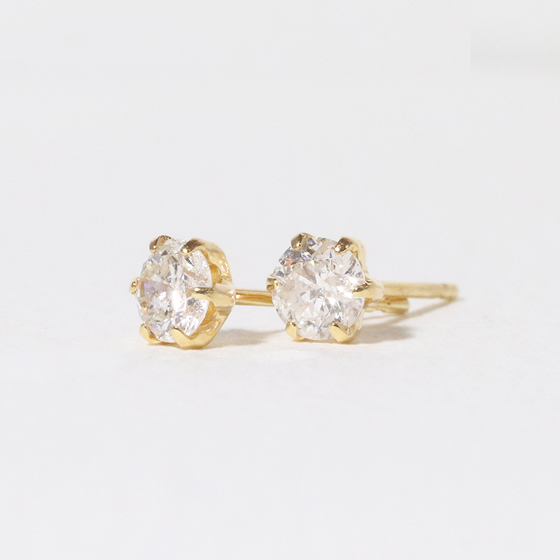 - K18 一粒天然ダイヤモンド スタッドピアス 0.40ct 5pe040 BQ-4