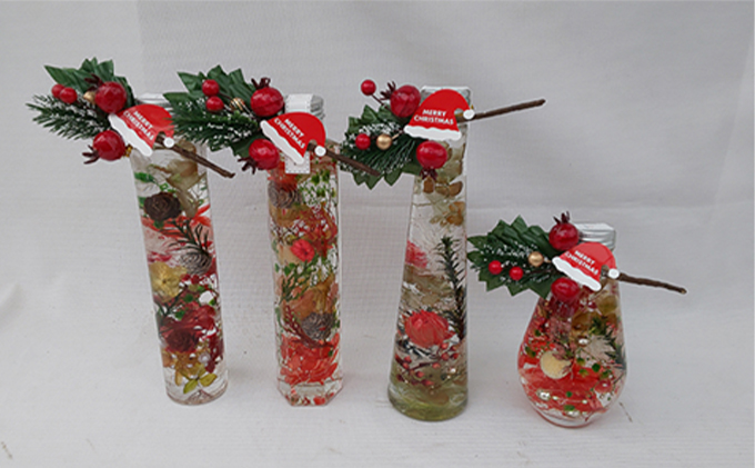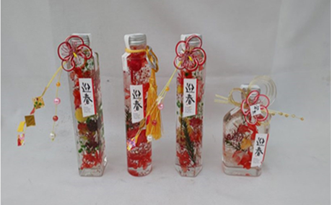 サンタの帽子つきのクリスマスハーバリウムと赤を基調とした迎春ハーバリウム Lサイズおまかせ2本セット | インテリア 植物 お花 お正月 イベント 冬 鮮やか 鑑賞 手入れ不要 ガラス 癒し ※離島への配送不可 ※2025年12月中旬~12月下旬頃に順次発送予定