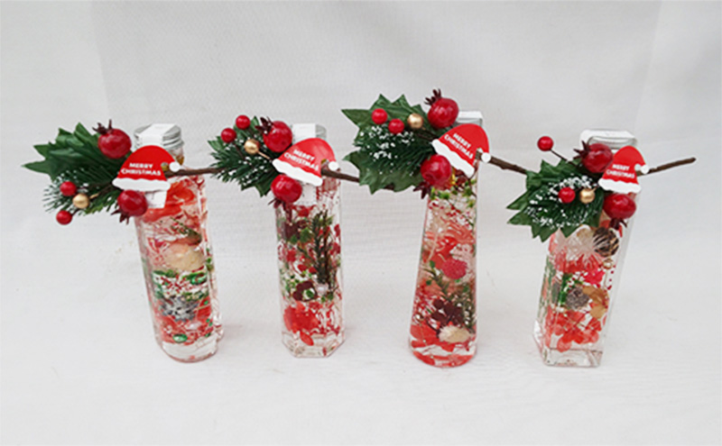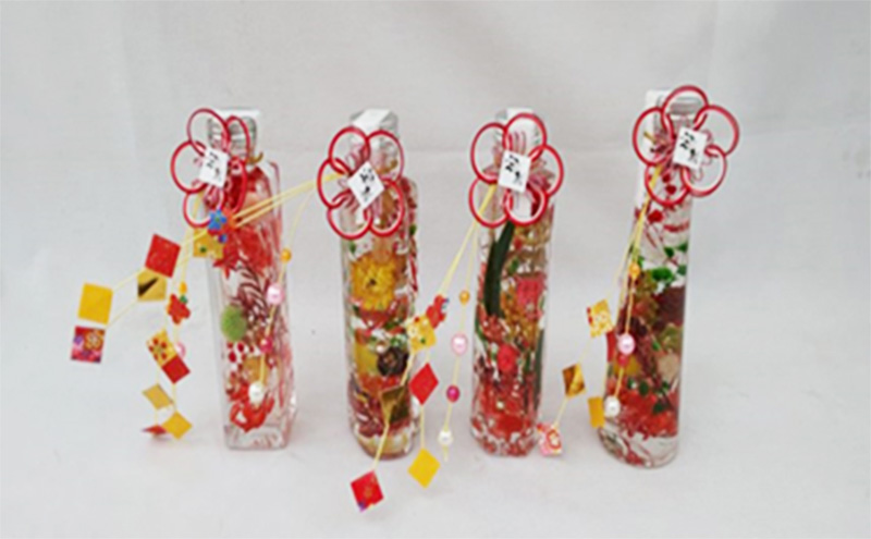 サンタの帽子つきのクリスマスハーバリウムと赤を基調とした迎春ハーバリウム Mサイズおまかせ2本セット | インテリア ※離島への配送不可 ※2025年12月中旬~12月下旬頃に順次発送予定