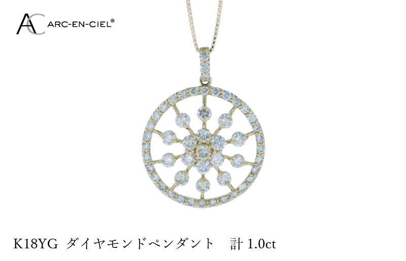 J049-4 アルカンシェル K18YGダイヤペンダント ダイヤ計1.00ct【鑑別書付き ジュエリー プレゼント ギフト ファッション アクセサリー 贈り物 贈答 お祝い 記念日】