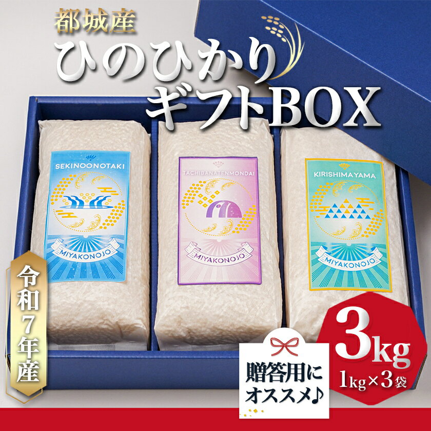 【ふるさと納税】都城産ひのひかりギフトBOX (1kg×3袋) - ヒノヒカリ 九州産米/都城市産 1kg真空パック包装 3袋セット 単一原料米 贈り物 贈答用 送料無料 17-2203【宮崎県都城市は2年連続ふるさと納税日本一!】