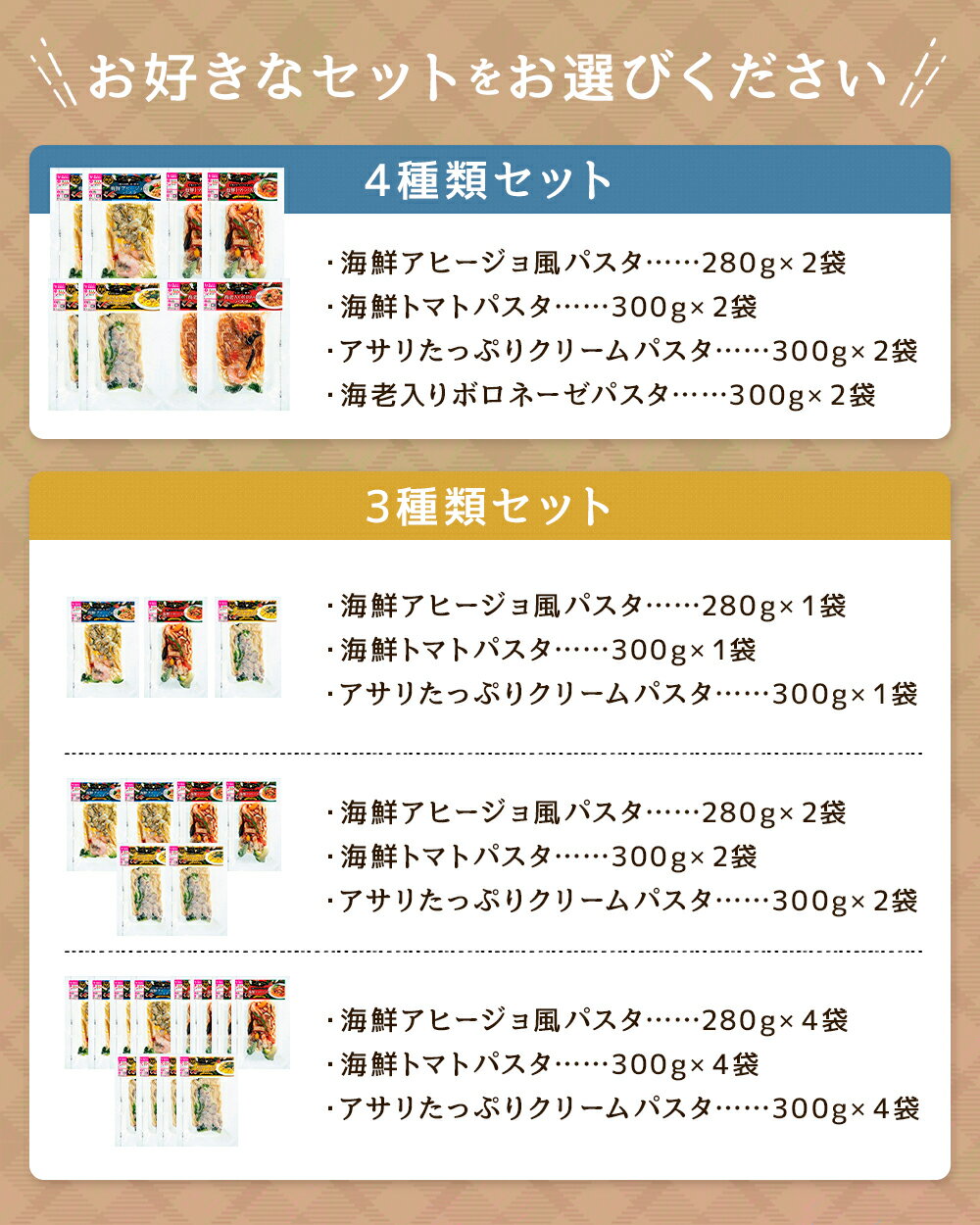 - 【ふるさと納税】冷凍海鮮パスタ 3食/6食/8食/12食 10000円 ~ 21000円 1万円 ~ 2万1000円 選べるセット 4種類セット 3種類セット 冷凍パスタ 海鮮 具材入り 温めるだけ お手軽 レンジ パスタ 惣菜 冷凍 送料無料