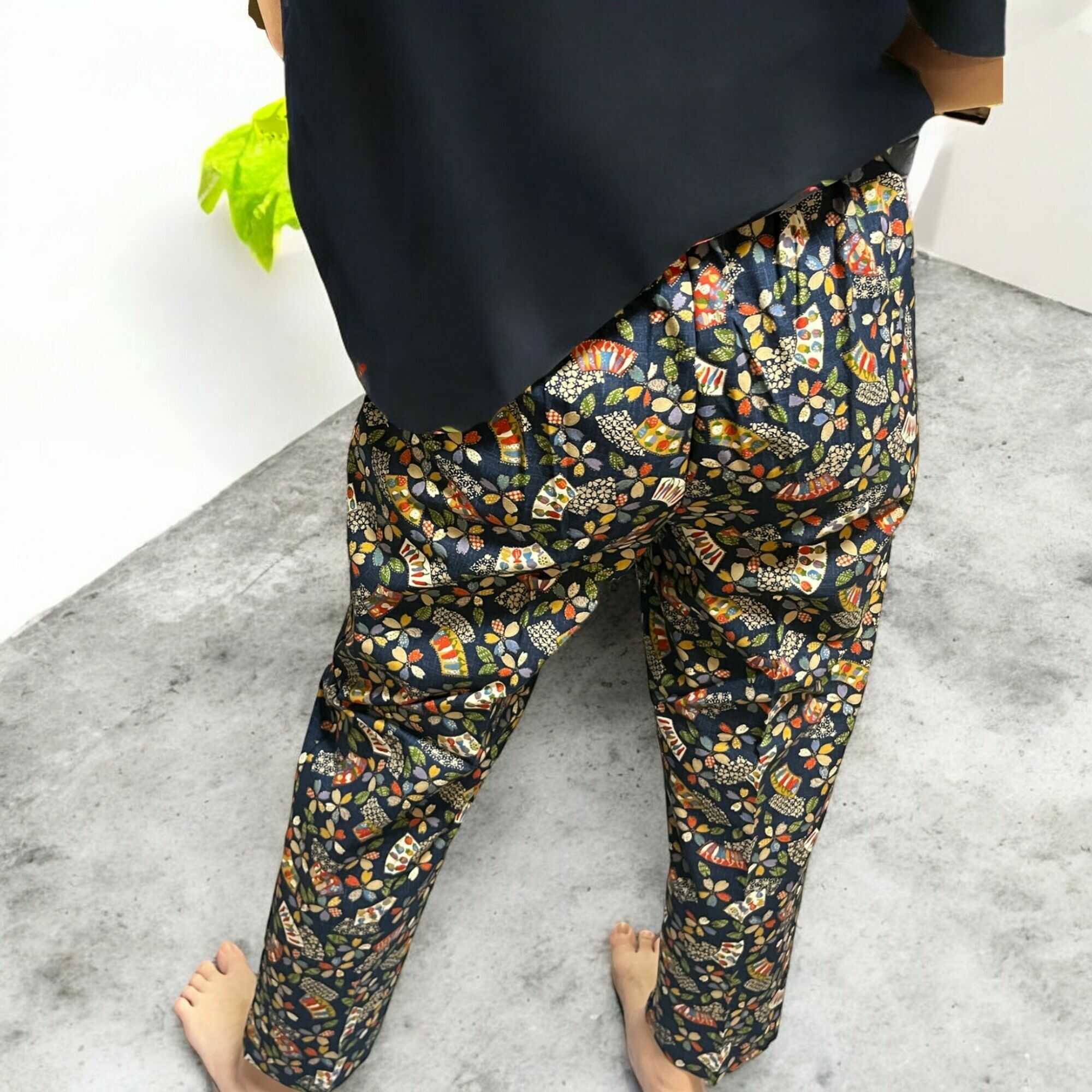 【ふるさと納税】日本製 綿100% 藍染調プリントパンツ・Aセット(Lサイズ2柄1組)【芸西織物株式会社】[ATGU002]