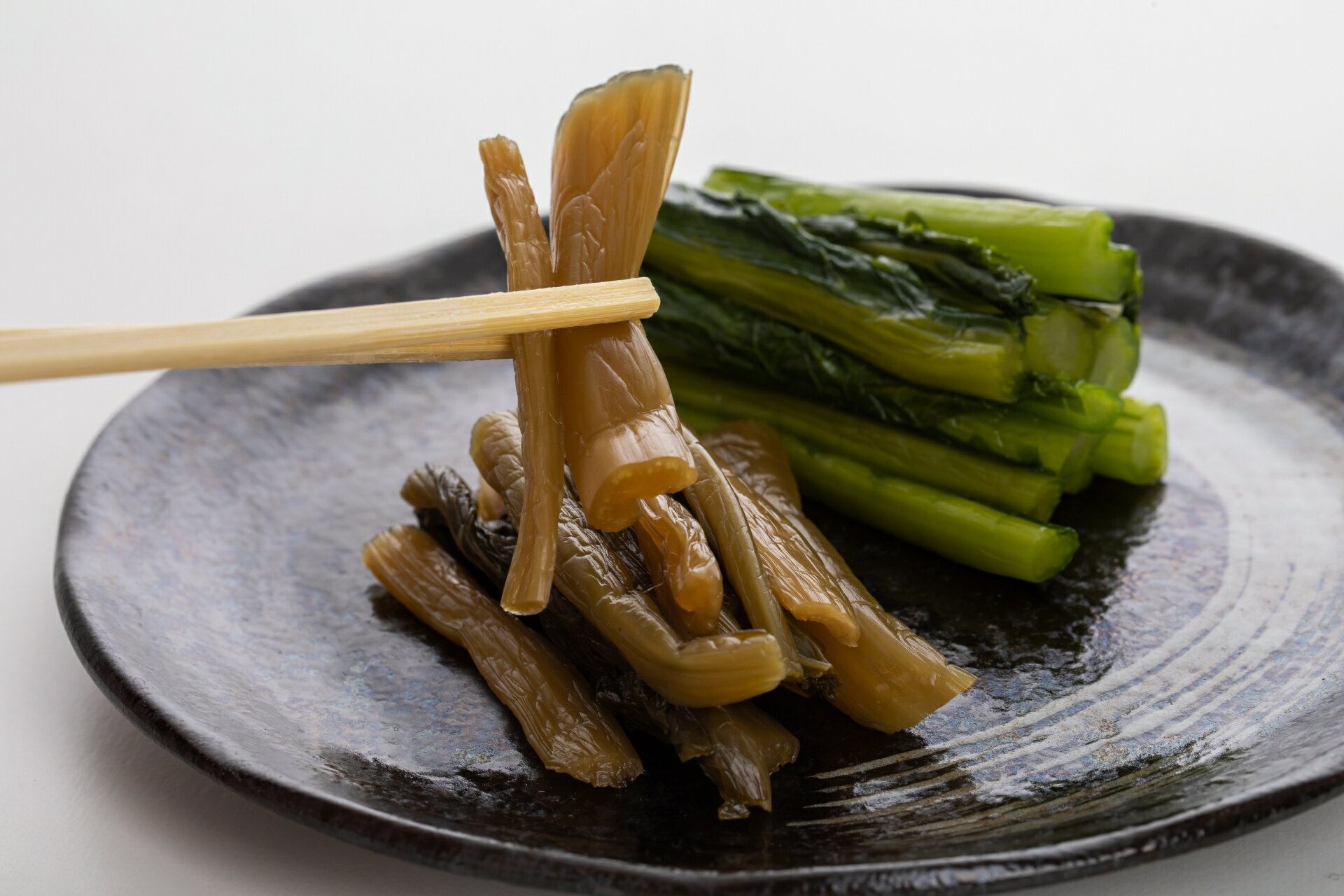 自家農園栽培 青たかな漬け(2.5kg)たかな 高菜 ちりめん高菜 漬物 漬け物 ご飯のお供 おにぎり 自家農園 大分県産【103200100】【松本漬物】