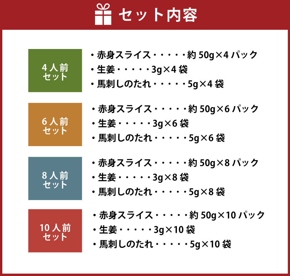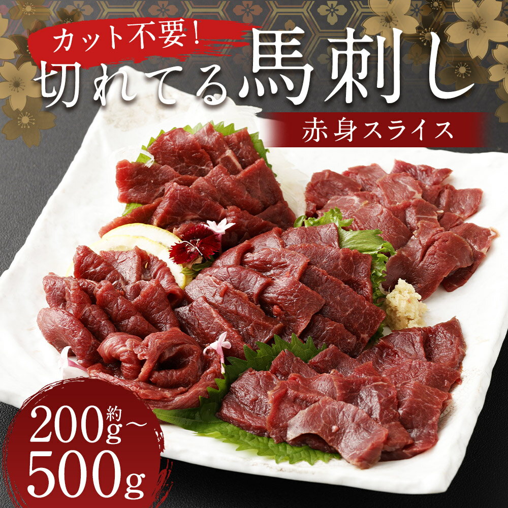 【ふるさと納税】<選べる内容量>【フジチク ふじ馬刺し】カット不要!切れてる馬刺し! 1人前あたり約50g 4人前(計約200g) / 6人前(計約300g) / 8人前(計約400g) / 10人前(計約500g) 赤身スライス 馬肉 お肉 馬刺 生姜 馬刺しのたれ 冷凍 熊本県 相良村 送料無料