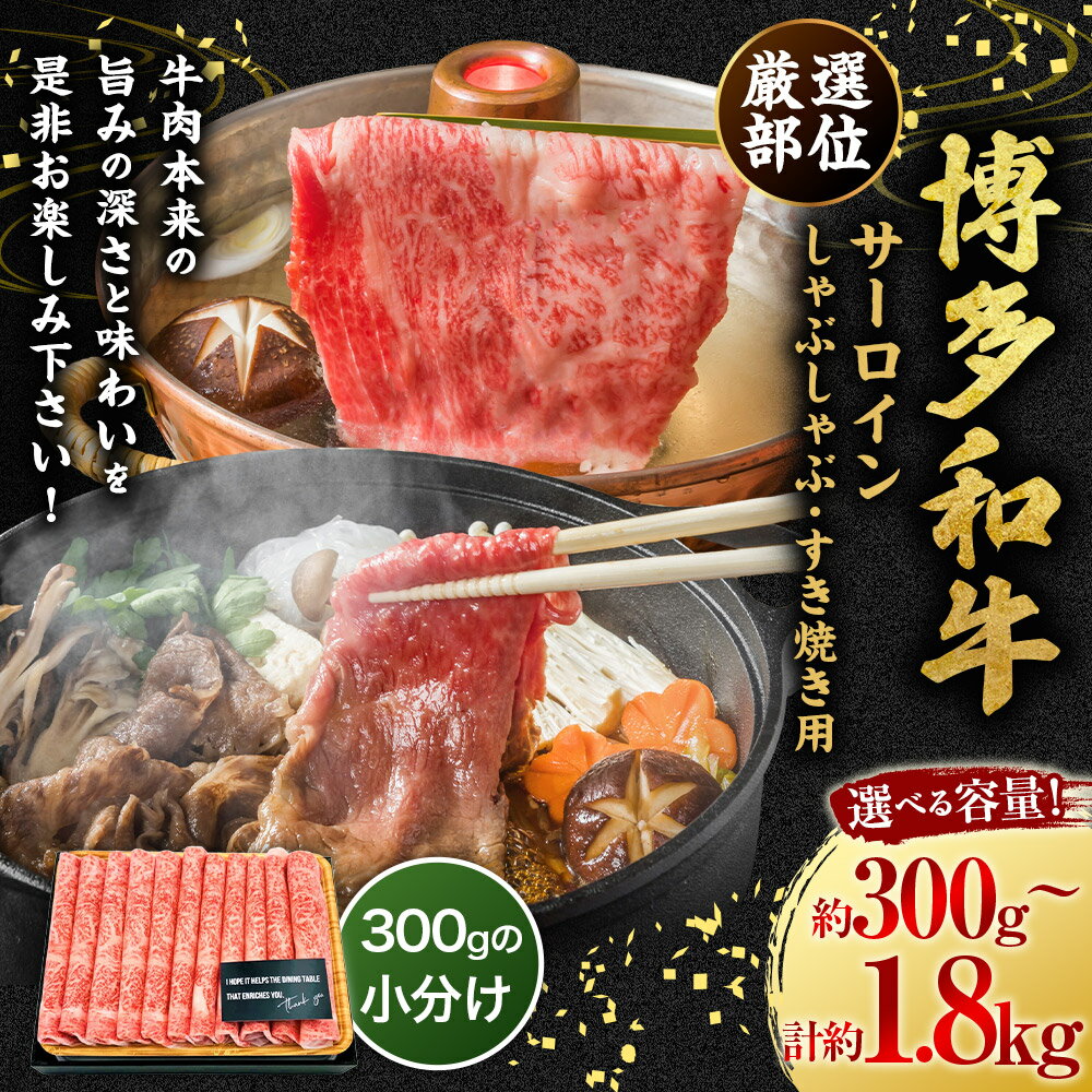 【ふるさと納税】<選べる容量>【厳選部位】博多和牛 サーロイン しゃぶしゃぶ すき焼き用 (約300g / 約600g / 約900g / 約1200g / 約1500g / 約1800g)肉 牛肉 牛 和牛 黒毛和牛 すき焼き すきやき しゃぶしゃぶ用 国産牛 福岡県産 送料無料 福岡県 うきは市 冷凍