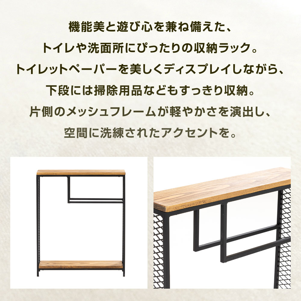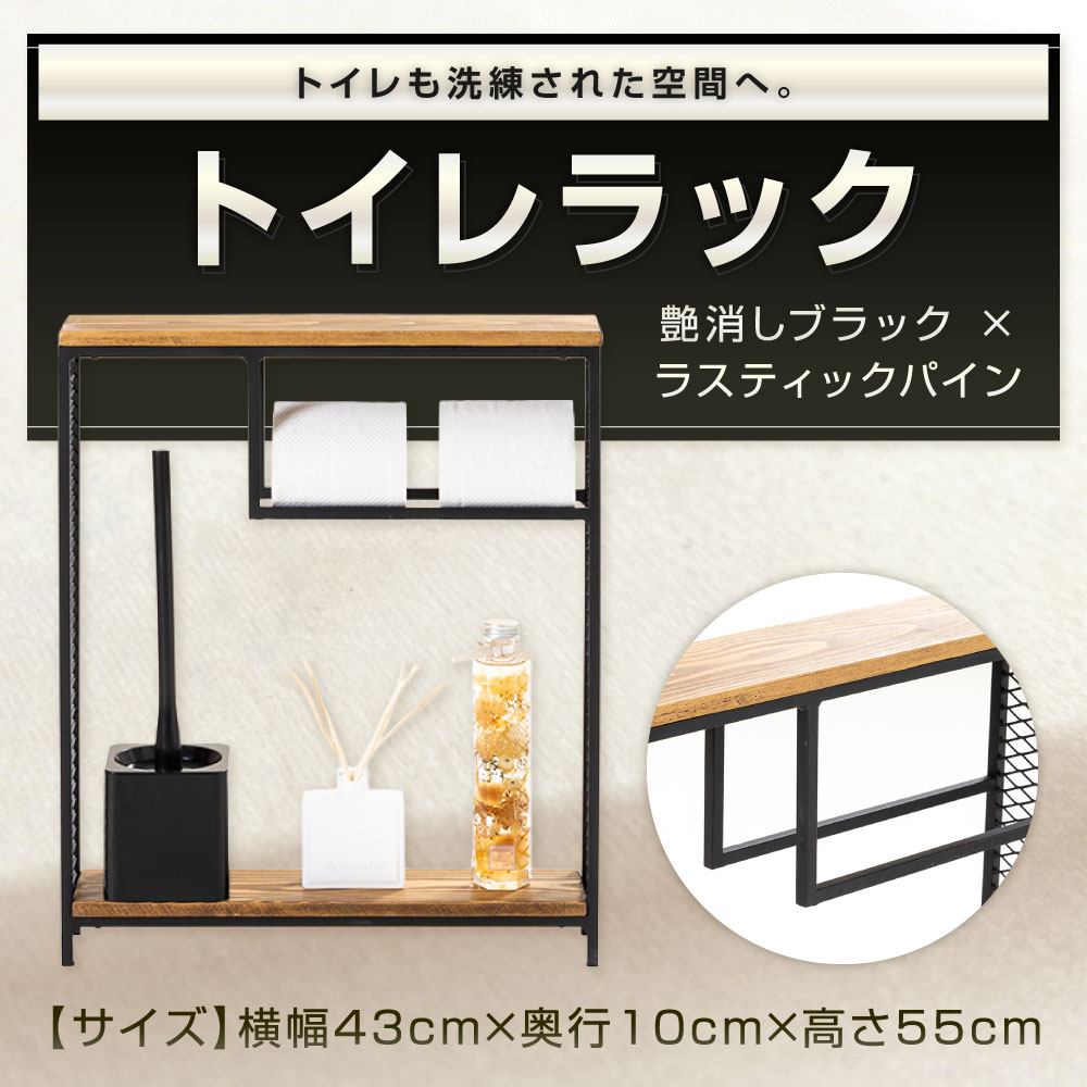 【ふるさと納税】トイレラック 艶消しブラック×ラスティックパイン 横幅43cm 奥行10cm 高さ55cm 鉄 アイアン ウッド 杉 無垢材 トイレ収納 ラック 収納 ランドリー サニタリー メッシュ フレーム おしゃれ ブラック 黒 福岡県北九州市