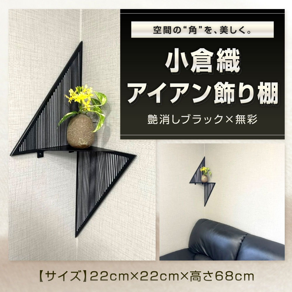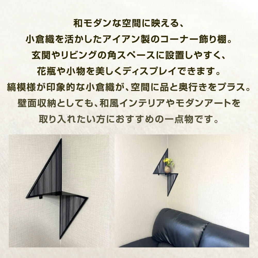 【ふるさと納税】小倉織アイアン飾り棚 艶消しブラック×無彩 22cm×22cm 高さ68cm 鉄 アイアン 小倉織 伝統織物 伝統 おしゃれ コーナー飾り棚 スペース 角 縞模様 縦縞 壁面収納 インテリア 和風 モダン 福岡県北九州市