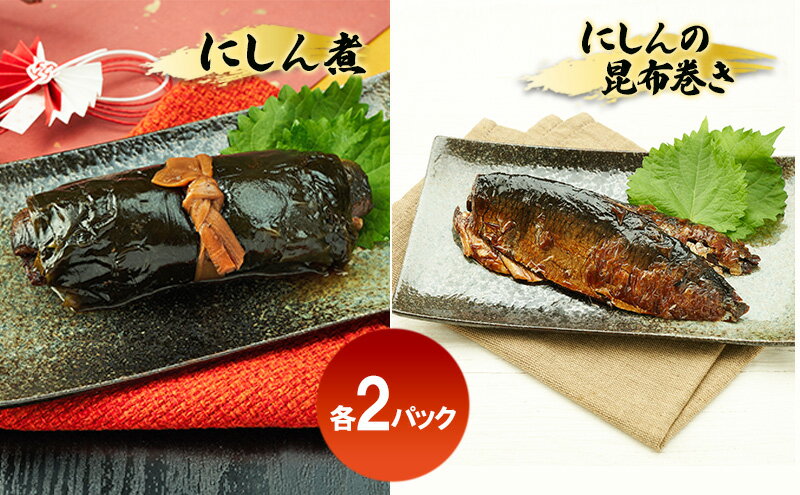 【ふるさと納税】秋田のおふくろの味 にしんセット(にしん煮 にしんの昆布巻き 各2パック) にしん 昆布 昆布巻き こんぶ オリジナル 調味液 甘辛味 保存料不使用 秋田 羽後