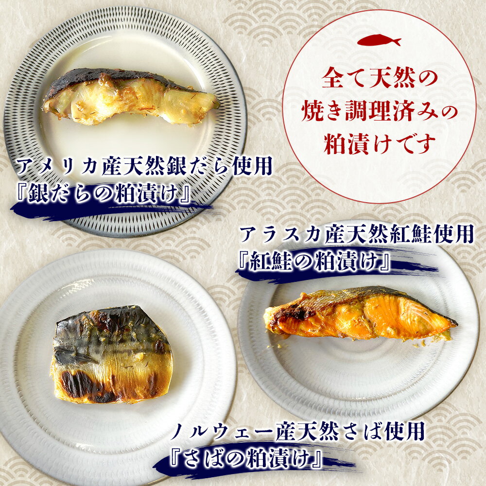 【ふるさと納税】魚よし 特製 無添加 切身3種 粕漬けセット(銀だら、紅鮭、さば)焼き 調理済み【小分け 真空パック 真空個包装 簡単調理 健康志向 温めるだけ 冷凍 レンチン お弁当 お手軽】K095022