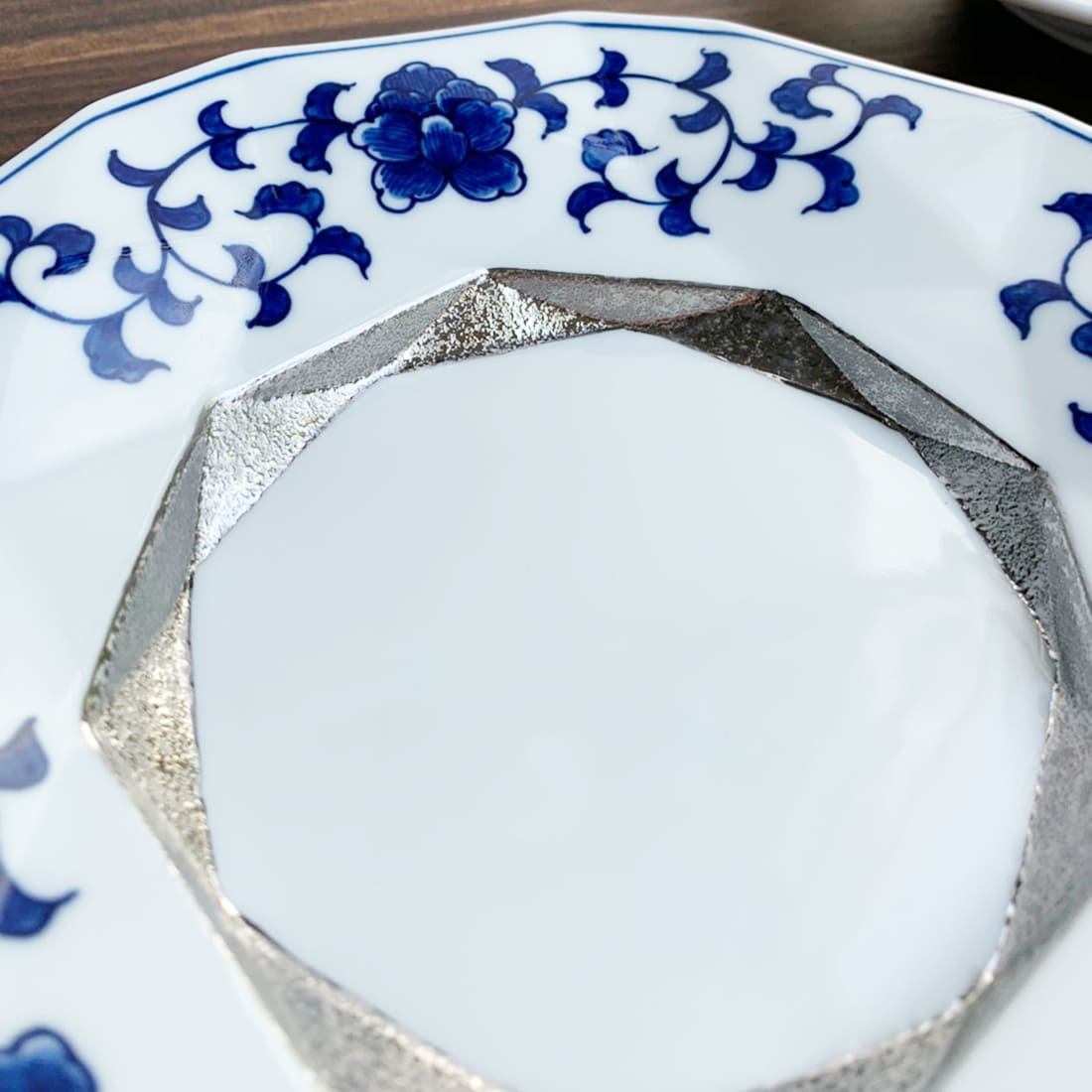 - 【ふるさと納税】有田焼 宝泉窯 ブリリアンカット銀彩唐草6寸皿2枚セット まるふく プレート ペア 染付 綺麗 中皿 メインディッシュ 35000円 3.5万円 A35-434