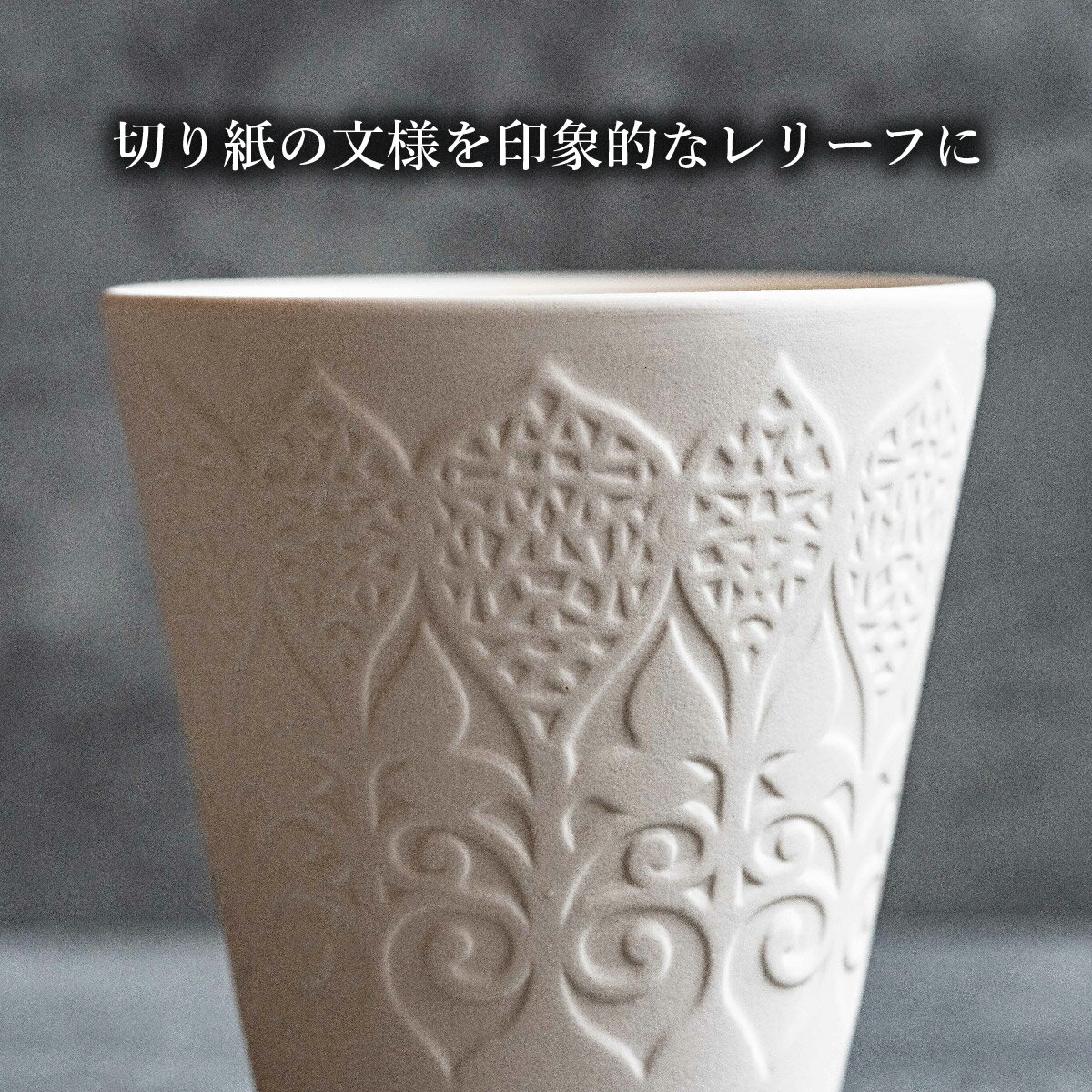 - 【ふるさと納税】有田焼 切り紙文様のレリーフ 樹葉蕾花 フリーカップ 2個 セット (パステルアイボリー) 切り紙作家「矢口加奈子」とのコラボ【ワークショップワイズケイ】ビアカップ ビアグラス カップ コップ タンブラー 食器 白 ギフト 35000円 3.5万円 A35-597