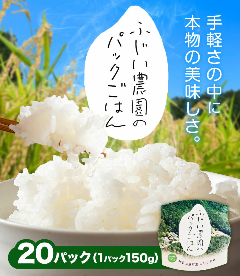 - 【ふるさと納税】パックごはん 神石高原町産 コシヒカリ 米 150g×20パック ふじい農園《30日以内に出荷予定(土日祝除く) 》お米 白米 ご飯 ごはん 白ご飯 白飯 国産 コメ 送料無料 広島県 神石高原町