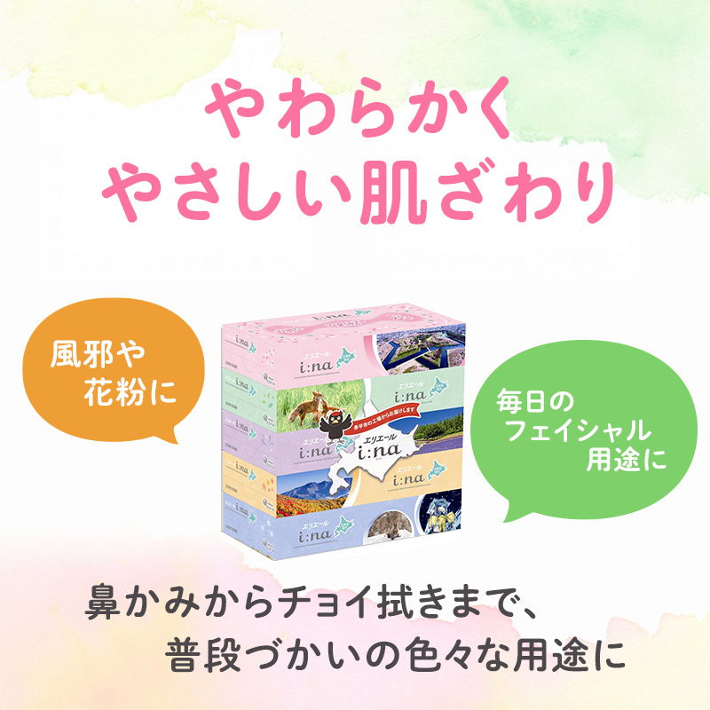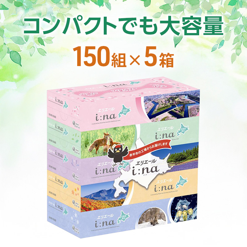 - 【定期便 3ヵ月連続お届け】 エリエール ハーフサイズ 収納に便利 コンパクト 少量6パック i:na 北海道 ティシュー 150組 5箱 6パック 計30箱 フィルムレス ふるさと納税限定デザイン イーナ 箱ティッシュ 備蓄品
