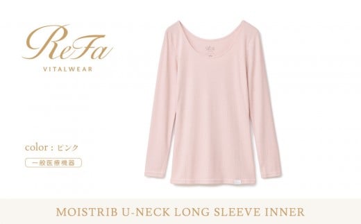 - 【ピンク Lサイズ】リファ バイタルテック モイストリブ Uネックロングスリーブインナー