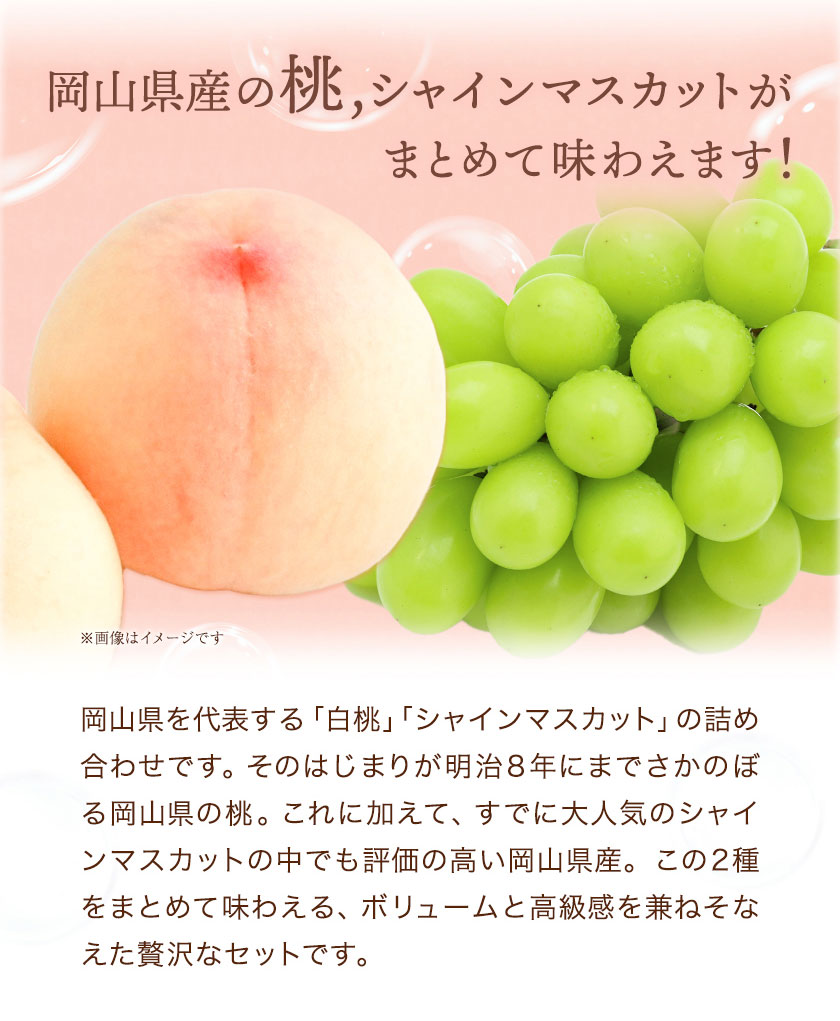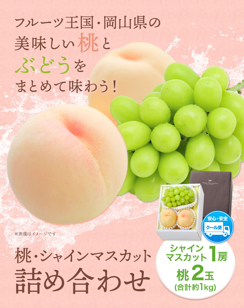 - 【2026年発送先行予約】桃・シャインマスカット詰め合わせ 約1kg クール便 冷蔵便 桃 もも 葡萄 ブドウ ぶどうシャインマスカット マスカット フルーツ セット 先行予約 晴れの国おかやま館 《2026年8月下旬‐9月中旬頃出荷》 フルーツ 果物 果実 岡山県 笠岡市---H-23---