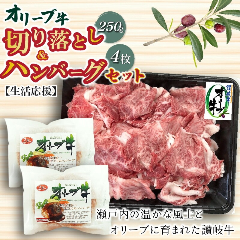 - 【ふるさと納税】オリーブ牛切り落とし250g&ハンバーグ4枚セット
