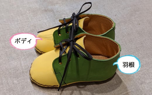 - BL027【ももはら靴工房】ポップなイタリアンレザーのベビーシューズ 水色(羽根:黄)
