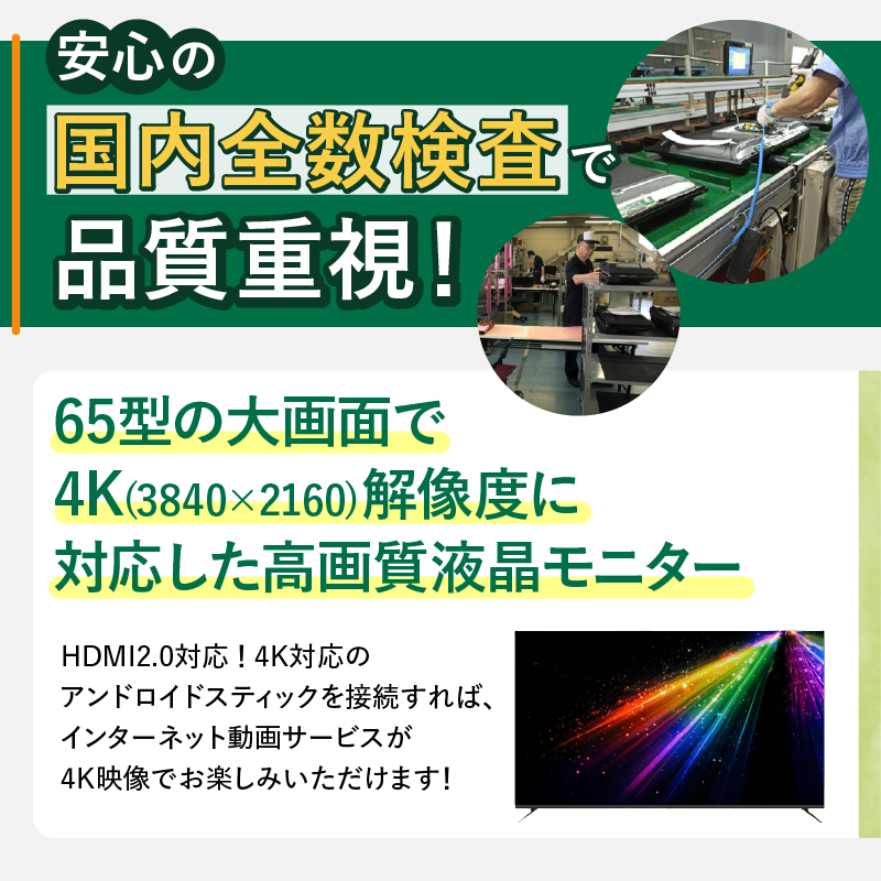 【ふるさと納税】 モニター 65型 4K対応 チューナーレス 液晶モニター 壁掛け可能 ウルトラハイビジョン VESA対応 AP65DPXB 家電 65インチ 法人用にもおすすめ 会議室 ホテル 学校 病院 デジタルサイネージ ダイコーアペックス 買い替え 送料無料 山梨県上野原市