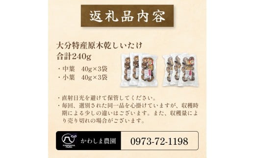 原木乾しいたけの詰め合わせ(かわしま農園)240g 大分県 玖珠町 原木 乾しいたけ 乾燥しいたけ 椎茸 乾燥椎茸 かわしま農園 国産 特産物 干し椎茸 国内有数 品評会 18年連続優勝 安心 安全 国内生産 生産量全国一