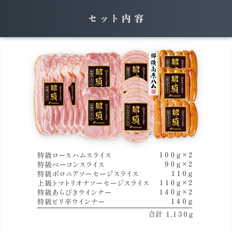 - 那須さらり豚使用 ロースハムスライス・ベーコンスライス・ボロニアソーセージスライス・リオナソーセージスライス・ウインナーギフトセット【 栃木県 那須塩原市 】 ns062-011