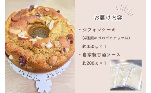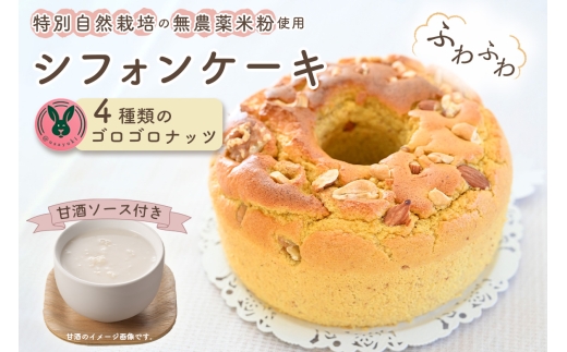 - 特別自然栽培無農薬米粉のホールシフォンケーキ「4種類のゴロゴロナッツ」 / スイーツ デザート おやつ 焼菓子 お菓子 洋菓子 こめこ ホールケーキ 独自ブレンド 低糖質 低カロリー 低GI 甘酒トッピングソース 愛知県 No.241