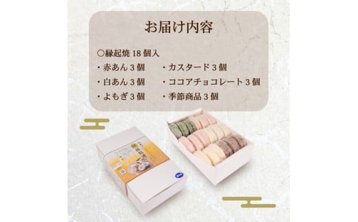 - 縁起焼 18個 ( 冷凍 和菓子 スイーツ デザート お菓子 おやつ 赤あん あんこ 小豆 あずき 白あん よもぎ ココア チョコレート カスタード 名産品 餅饅頭 ご縁 お米 自宅用 手土産 ギフト プレゼント 家庭用 贈答 お取り寄せ 冷凍スイーツ お中元 お歳暮 合格祈願 感謝 ) 山口 下関