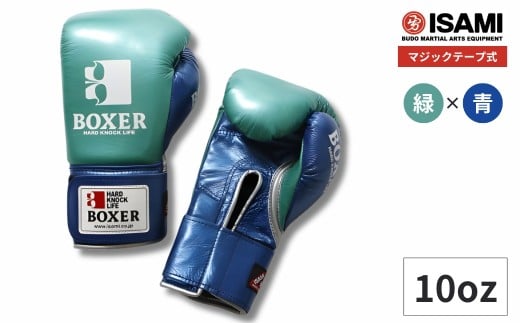 ボクサー エナメルグローブ(マジックテープ式) 10oz 緑×青 IBX-120 | ボクシング スポーツ 格闘技用品 格闘技 総合格闘技 MMA ボクシング グローブ 緑 青 日本製 本革 ボクサー アスリート 高品質 ハイクオリティ 耐久性 スパーリンググローブ ボクシンググローブ トレーニング 試合 フィットネス プロ選手 アマチュア 装備 埼玉県 久喜市