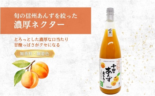 信州 千曲のあんずネクター ジュース 720ml 6本セット| 杏子 果物 フルーツ 長野県産 千曲市| 杏子 果物 フルーツ 長野県産 千曲市