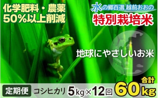 - 【令和7年産 新米】【12ヶ月定期便】こしひかり 5kg × 12回 計60kg【白米】減農薬・減化学肥料 「特別栽培米」-地球にやさしいお米-