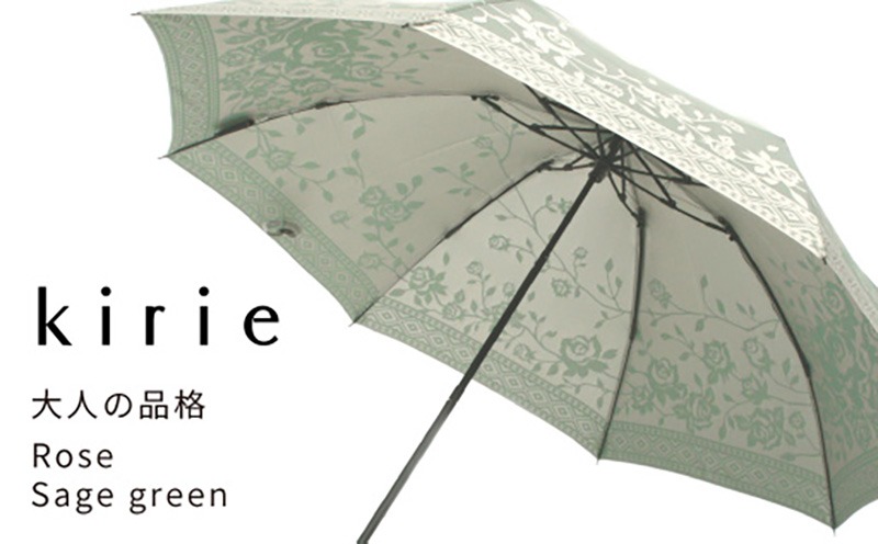 CB101 【槙田商店】晴雨兼用折りたたみ傘 kirie バラ セイジグリーン|送料無料 槙田商店 傘 雨傘 おしゃれ レディース 贈答 プレゼント ギフト 母の日 誕生日 日本製 女性 長傘 晴雨兼用 ブランド 高品質 婦人用 日傘 UV加工