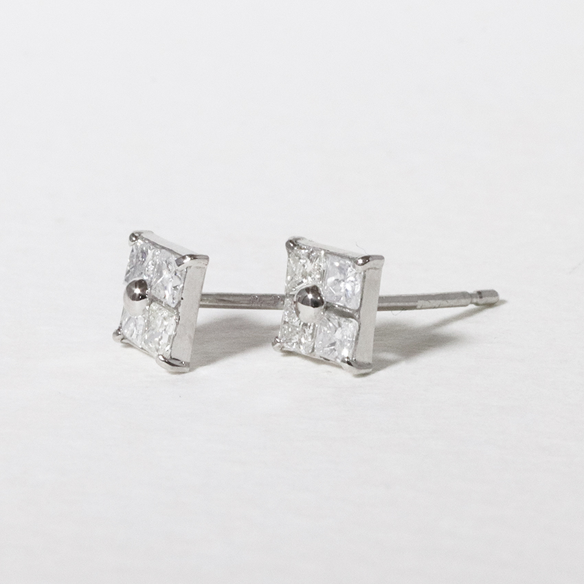- プラチナ スクエアダイヤモンドピアス(四角)BQ-128