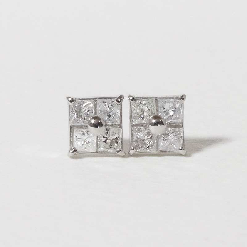 プラチナ スクエアダイヤモンドピアス(四角)BQ-128