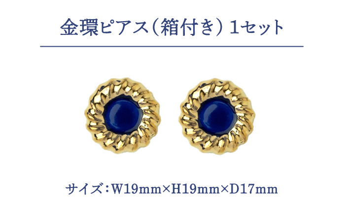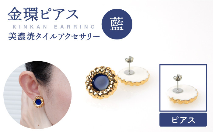 - 【美濃焼】【 藍 】金環 ピアス 【七窯社】≪多治見市≫ [TAP015] ゴールド アクセサリー 焼き物