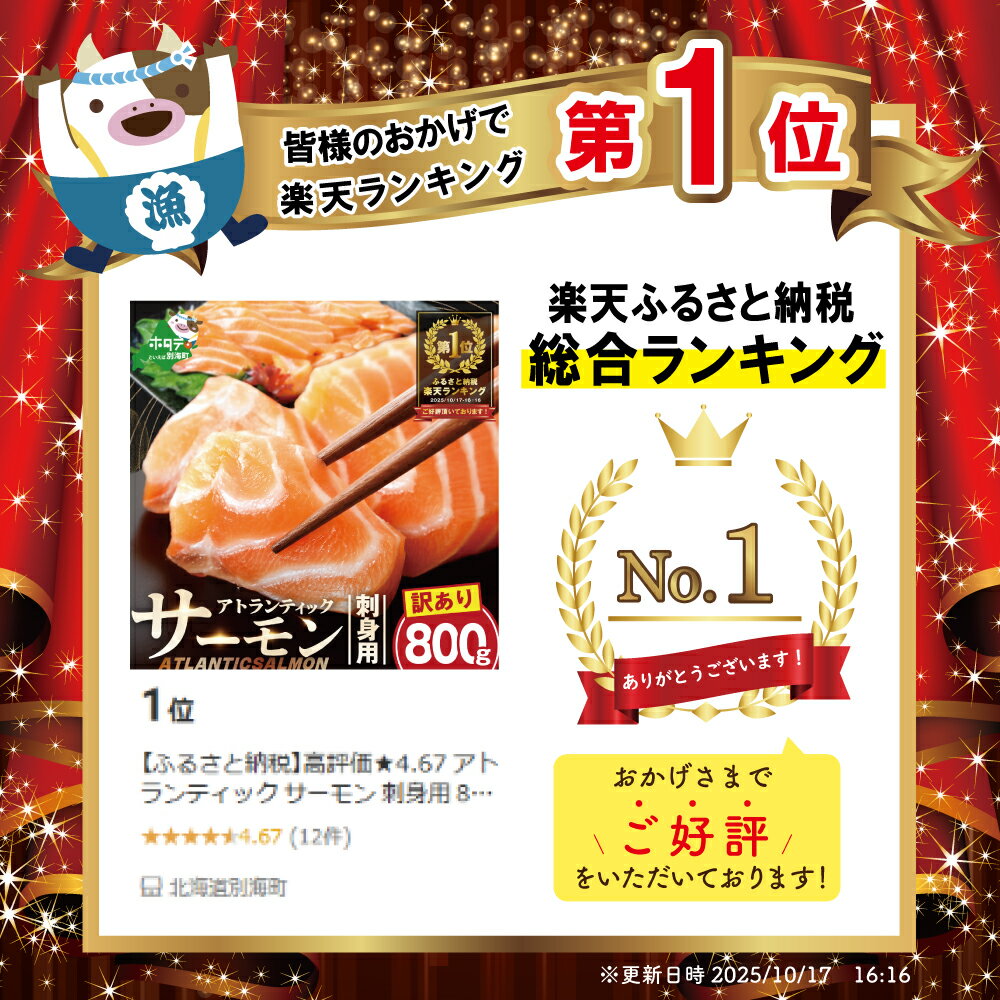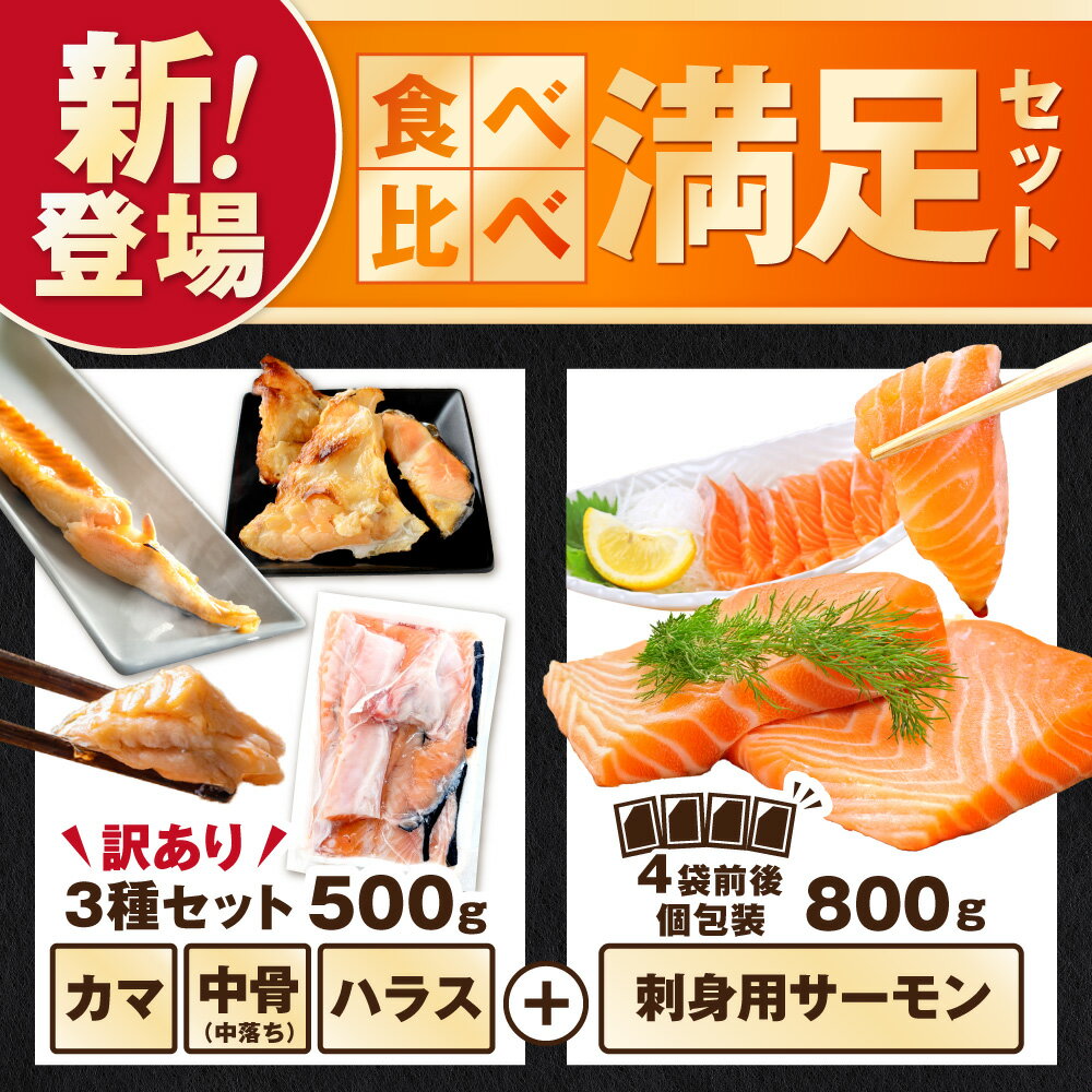 - 【ふるさと納税】高評価★4.54 アトランティック サーモン 刺身用 800g (4パック程度に 小分け )or 訳あり ハラス & カマ & 中骨 バラエティセット 500g( ふるさと納税 サーモン 刺身 訳あり 小分け 鮭 刺し身 わけあり 人気 ランキング 北海道 別海町 )