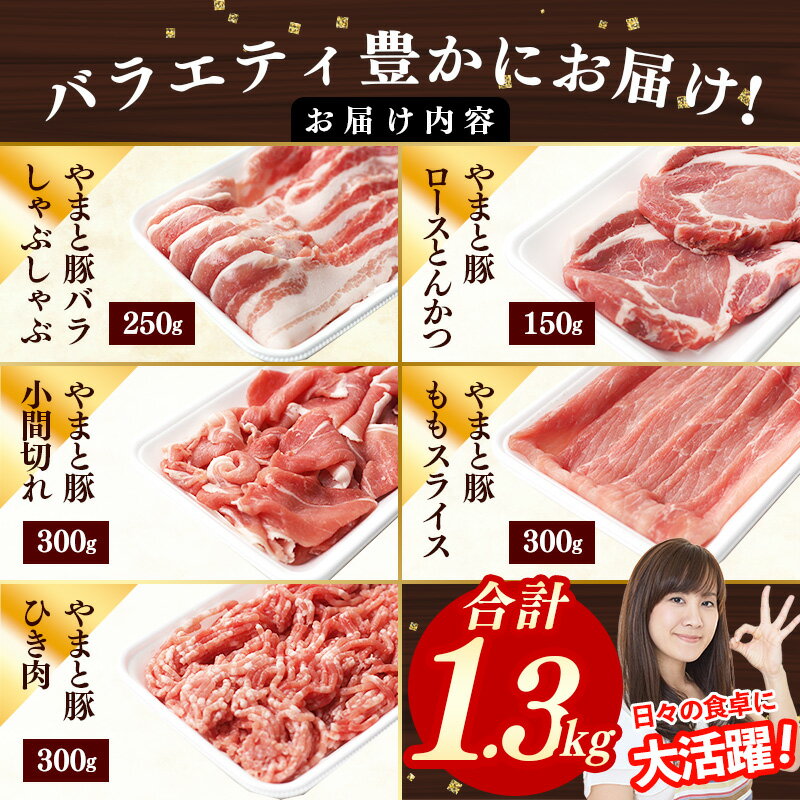 【ふるさと納税】岩手県産やまと豚5種約1.3kg 国産 肉 豚肉 やまと豚 鍋 焼肉 豚ロース 豚バラ 豚こま モモスライス ひき肉 とんかつ 生姜焼き しゃぶしゃぶ 真空パック 小分け 冷凍 岩手県 岩手町