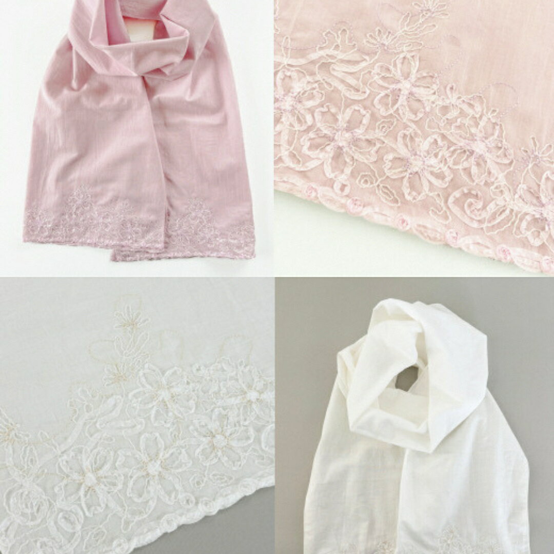 - 【ふるさと納税】 ストール さくら柄 刺繍ストール オーガニックコットン レディース 日本製 選べるカラー | サクラ 桜 おしゃれ シンプル マフラー 春夏 春 夏 プレゼントギフト 母の日 新潟県 五泉市 有限会社田中刺繍