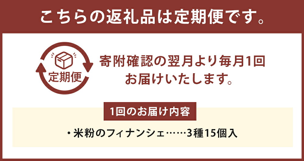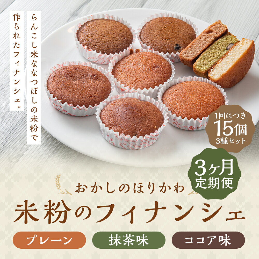 - 【ふるさと納税】【3ヶ月定期便】米粉のフィナンシェ 1回あたり15個入り 3種セット プレーン・抹茶・ココア味 1ヶ月毎 3回 らんこし米 ななつぼし 米粉 チョコレート スイーツ お菓子 洋菓子 焼き菓子 デザート おやつ 北海道産 国産 北海道 蘭越町 送料無料