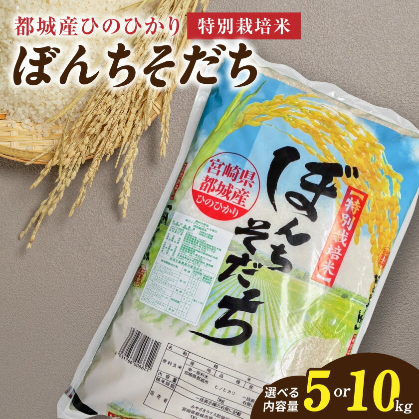 - 【ふるさと納税】【内容量が選べる!】都城産ひのひかり特別栽培米「ぼんちそだち」 - 都城産 ひのひかり 特別栽培米ぼんちそだち 選べる内容量 5kg/10kg お米 お弁当 単一原料米 送料無料 SKU-N501【宮崎県都城市は2年連続ふるさと納税日本一!】