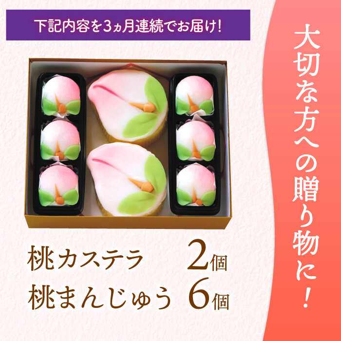 【ふるさと納税】【3回定期便】【長崎縁起菓子】桃カステラ2個・桃まんじゅう6個 詰合せ(中)/ 桃カステラ カステラ まんじゅう 桃の節句 ひな祭り / 諫早市 / 株式会社梅月堂[AHBN022]