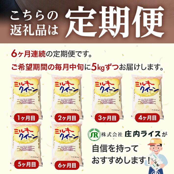【ふるさと納税】≪6ヶ月定期便≫ ミルキークイーン 5kg×6ヶ月連続 計30kg 山形県庄内産 ご希望の毎月中旬お届け 東北 遊佐町 庄内地方 庄内平野 米 お米 精米 白米 庄内米 ごはん ご飯 セット 連続定期便