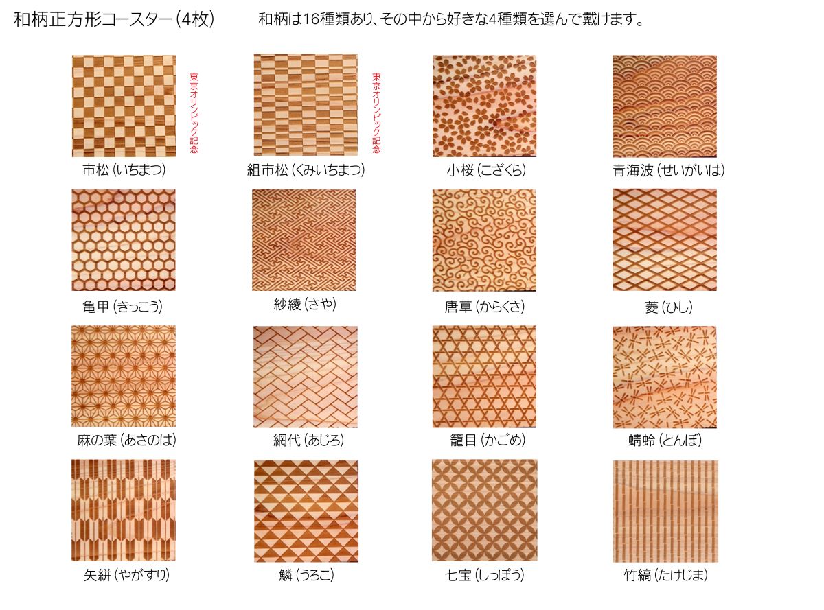 - 【ふるさと納税】木製和柄コースター(4枚セット)角 和柄縁起解説入 ふるさと納税 コースター 木製 和風 和柄 縁起 御守文様 開運 厄除け 木彫り 平彫り 木工 木製品 京都府 福知山市 FCG040