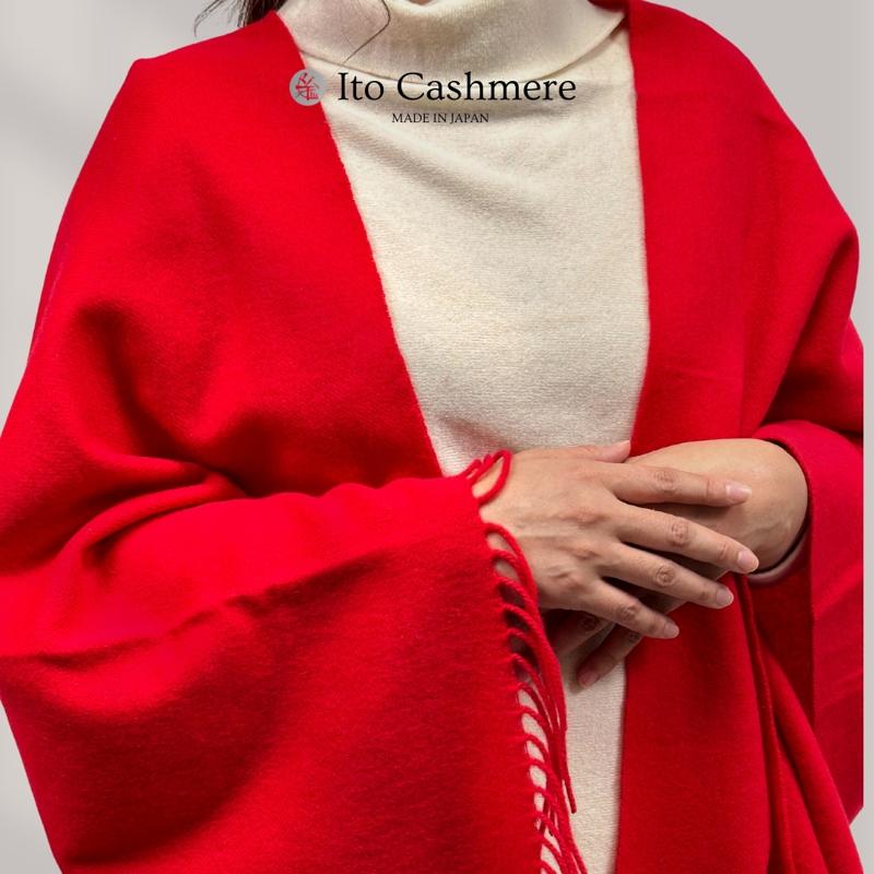 - 【ふるさと納税】100%ピュアカシミヤ・大判ストール フリンジ付き レッド