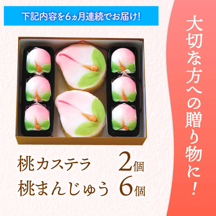 【ふるさと納税】【6回定期便】【長崎縁起菓子】桃カステラ2個・桃まんじゅう6個 詰合せ(中)/ 桃カステラ カステラ まんじゅう 桃の節句 ひな祭り / 諫早市 / 株式会社梅月堂[AHBN023]
