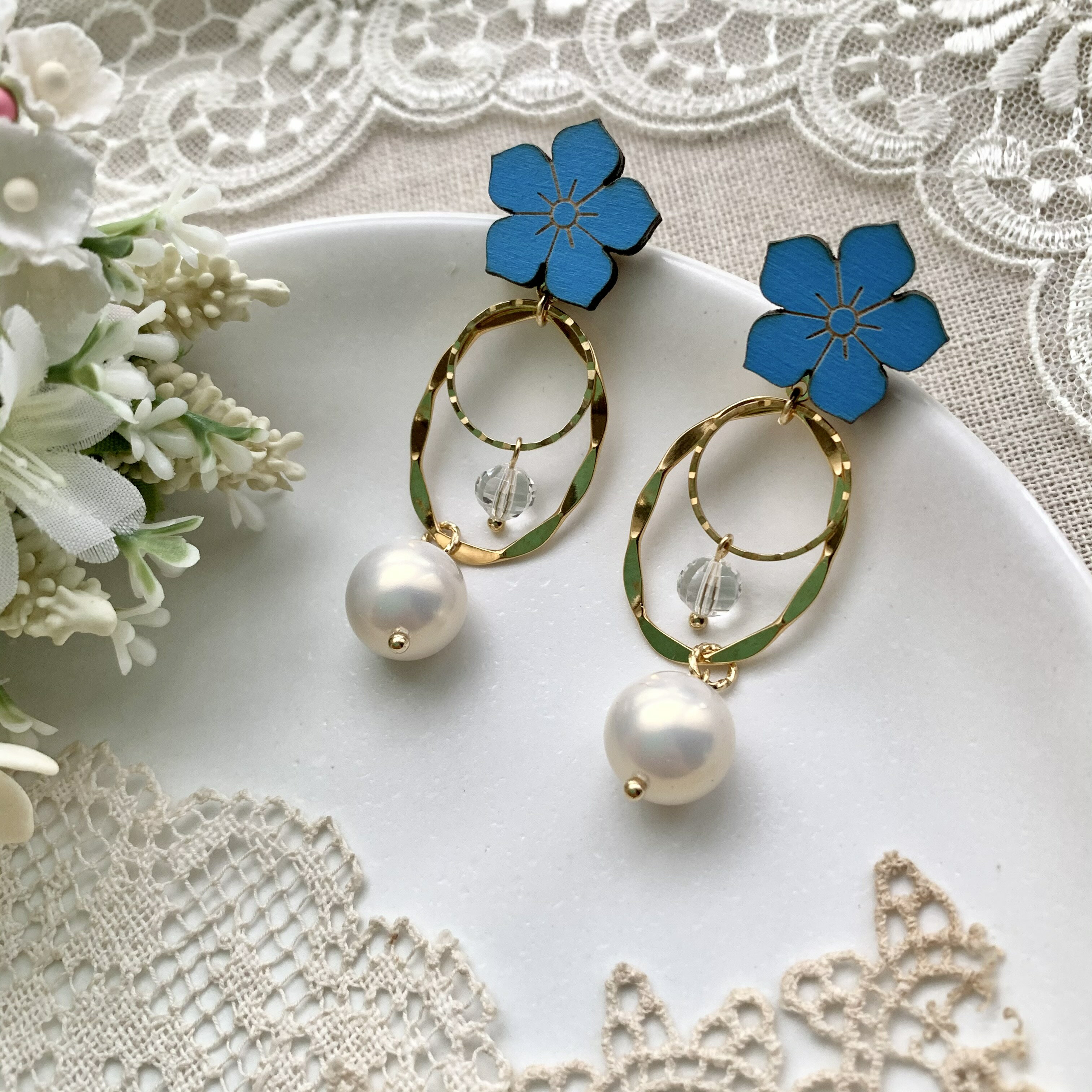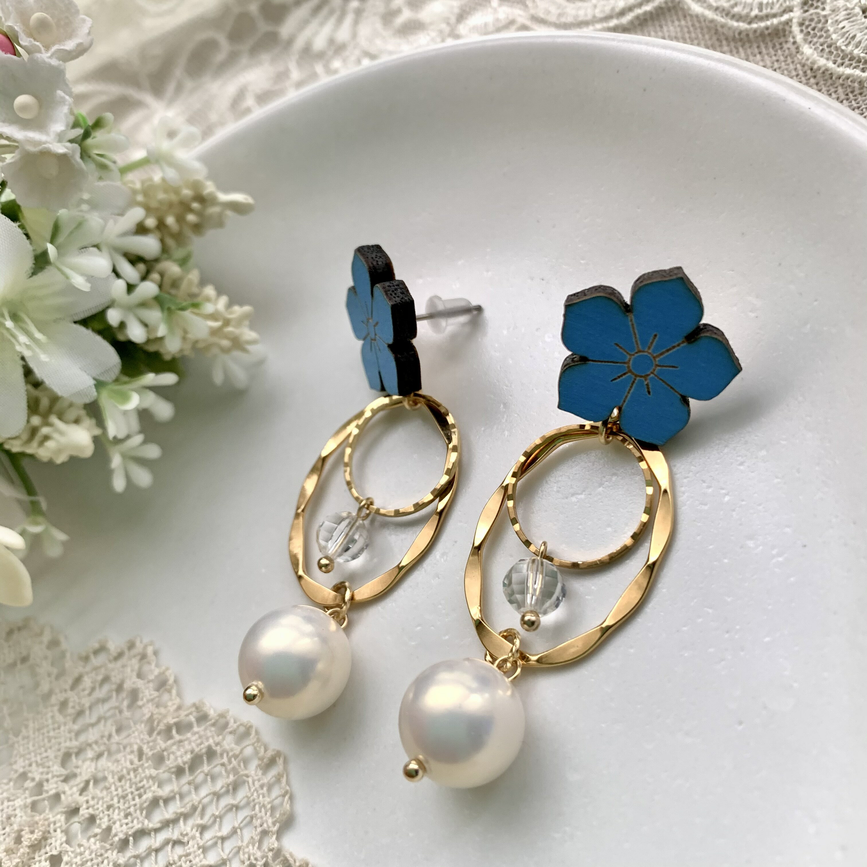 - 【ふるさと納税】水色桔梗とフープの耳飾り(ピアス) ふるさと納税 水色桔梗 耳飾り ピアス フープ 木製 木彫り 高彫り 木工 木製品 チタン パール オーダーメイド 京都府 福知山市 京都 福知山 ふるさと 奥京都 FCG062